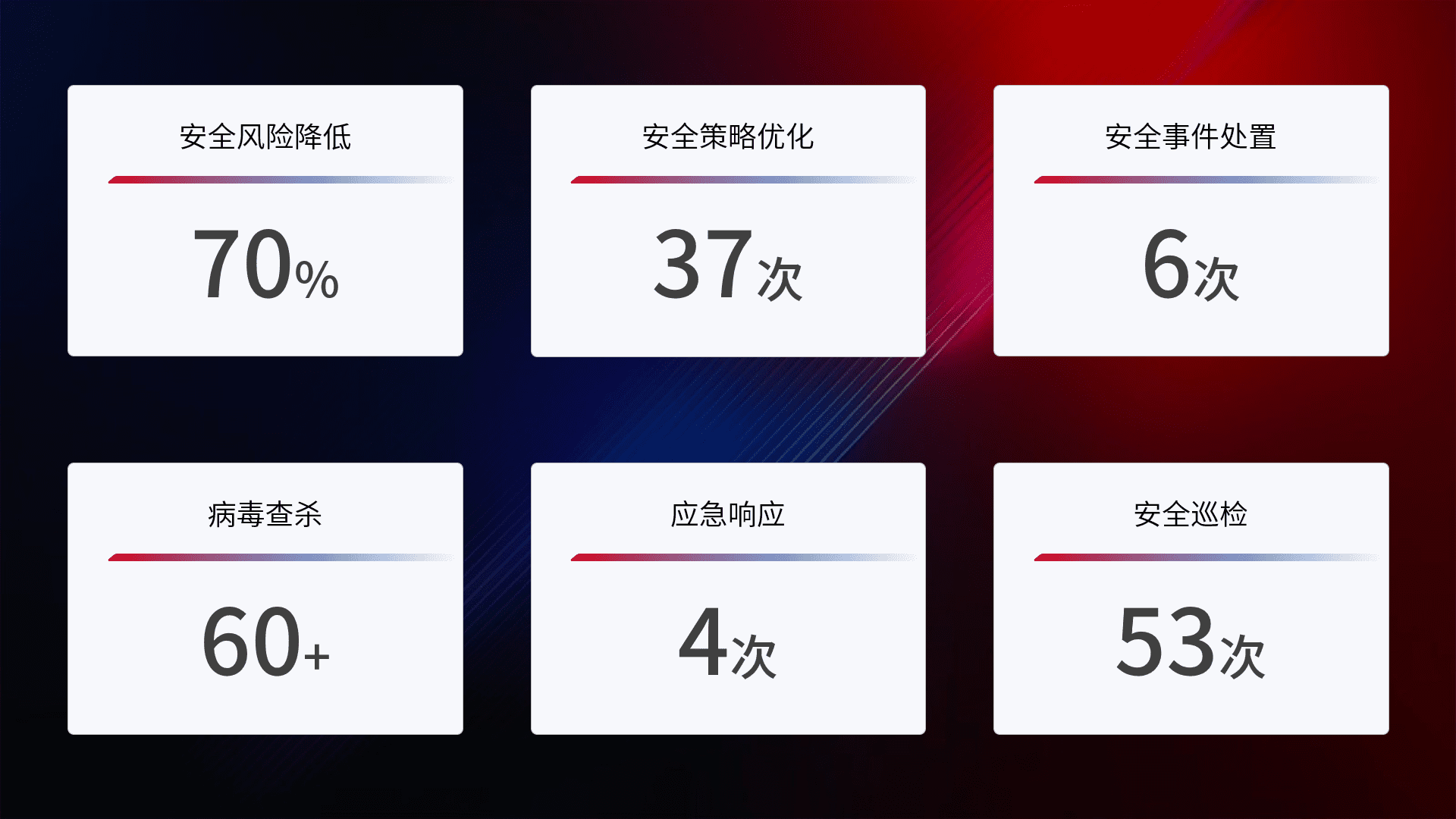 提供全面的安全事件报告体系,,包括处置报告、、、周报、、季度和年度总结,,结合持续监控,,帮助客户深入了解网络安全状况。。