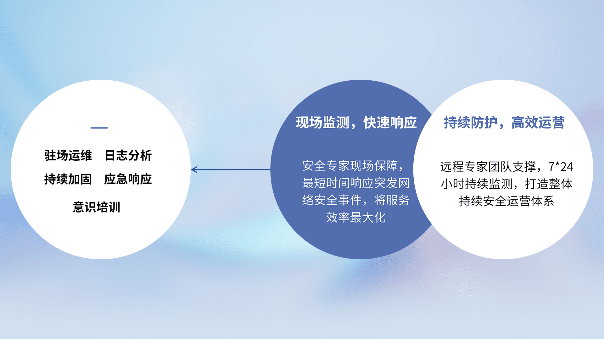 7X24小时持续监测安全事件,保持安全策略有效性,降低资产脆弱性风险,,,精准拦截黑客攻击,,,,减少被黑客利用的机会,,,,第一时间遏制,,降低损失。。
